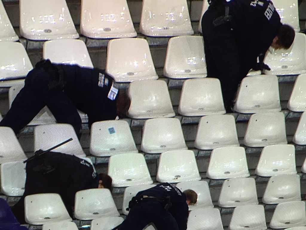 Die Polizei hat herrenlosen Koffer gefunden. Straße zum Stadion komplett gesperrt #SSNHD #GERNED @SkySportNewsHD pic.twitter.com/gWtSb6H65W