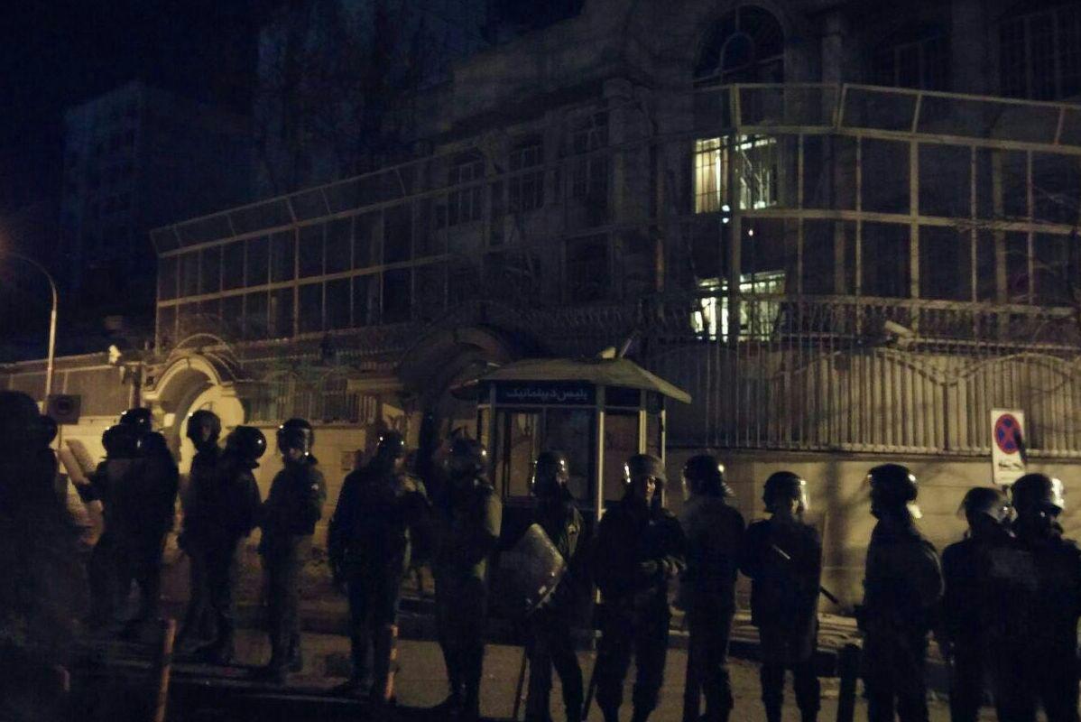 Στην Τεχεράνη, το συγκεντρωμένο πλήθος πανηγυρίζει την πυρπόληση της πρεσβείας της Σαουδικής Αραβίας με μολότοφ.